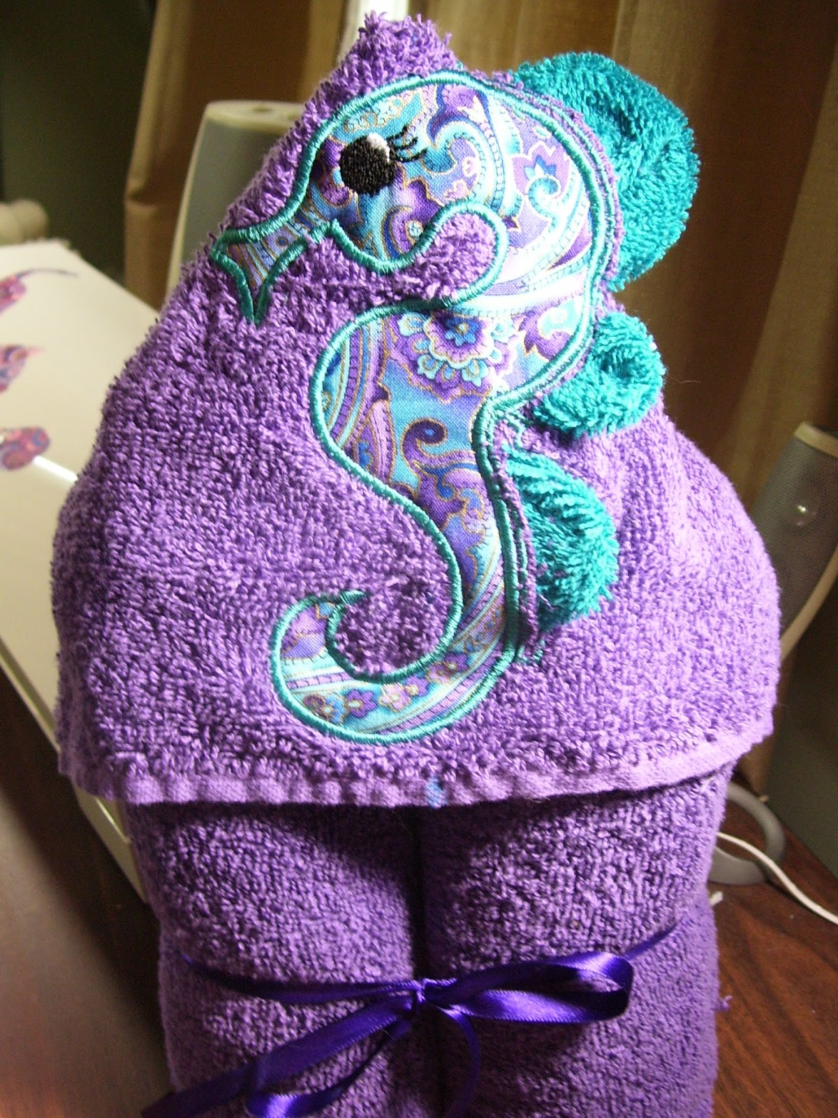 Wow, it's amazing how quickly I get sidetracked! Back to the Easter baskets and embroidery. Every year I make hooded towels to put in the Easter baskets. My favorite place to get the designs for hooded towels is www.appliquecorner.com Her designs sew out beautifully. My problem is always picking out which ones to make! They are really addicting once you get started and get the hang of them. Just how many hooded towels does a 3 year old need?